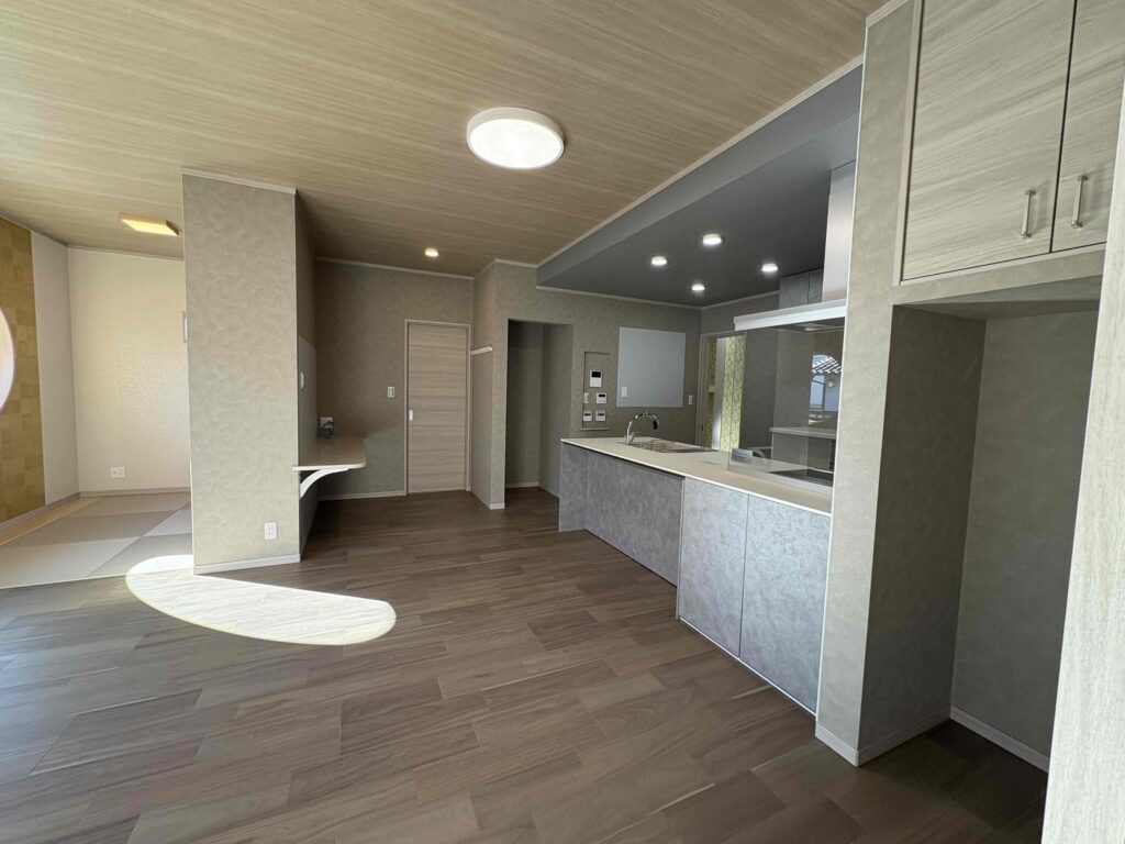 - 開放感あるオープンキッチン、マグネットクロスで生活空間が便利に